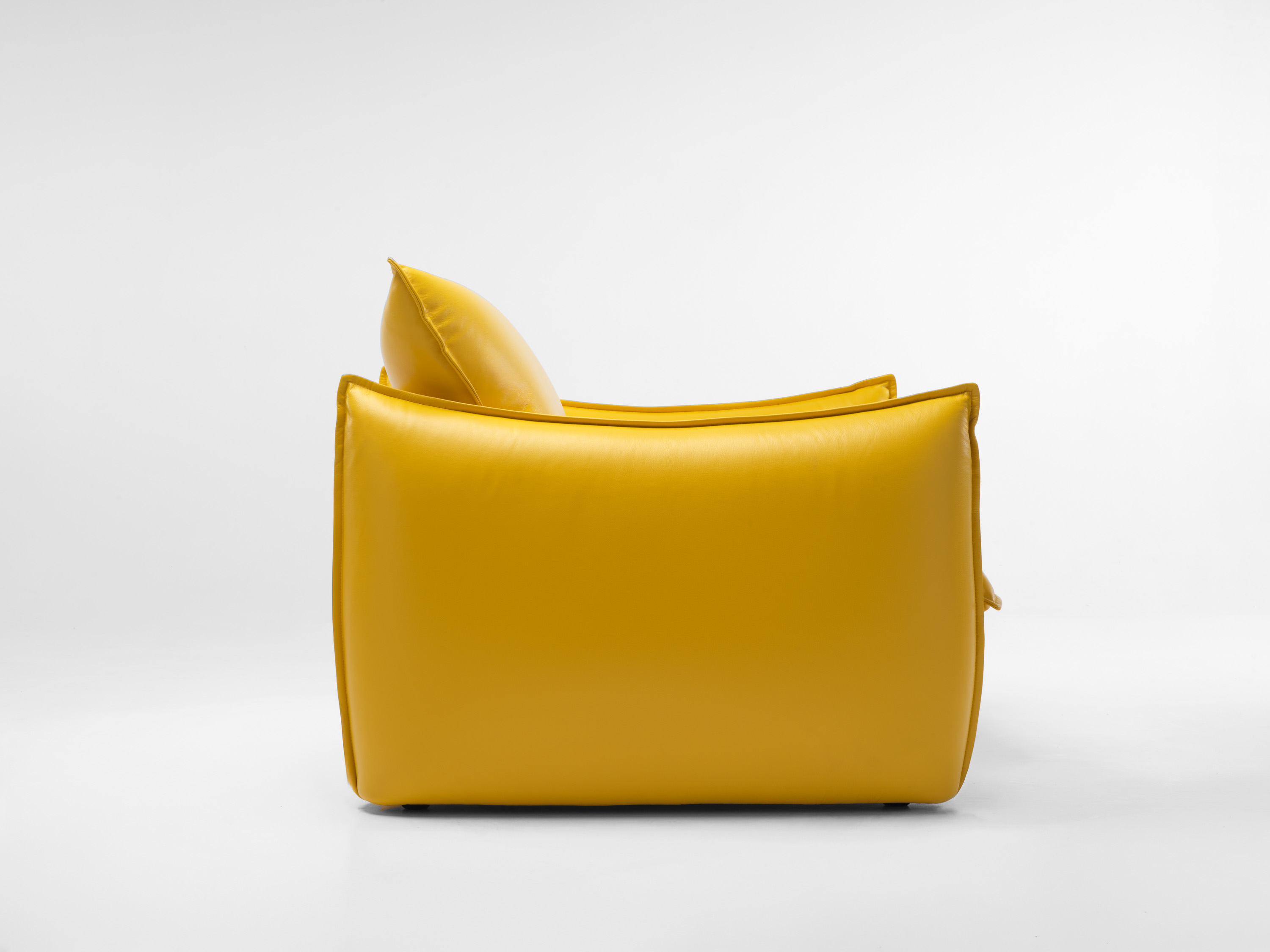 Defined by its sculptural, pillow-like curves and exaggerated French seam detailing, Klara blends softness with a bold, graphic presence. Its generously cushioned form is paired with fully upholstered arms, creating a silhouette that is both refined and inviting.