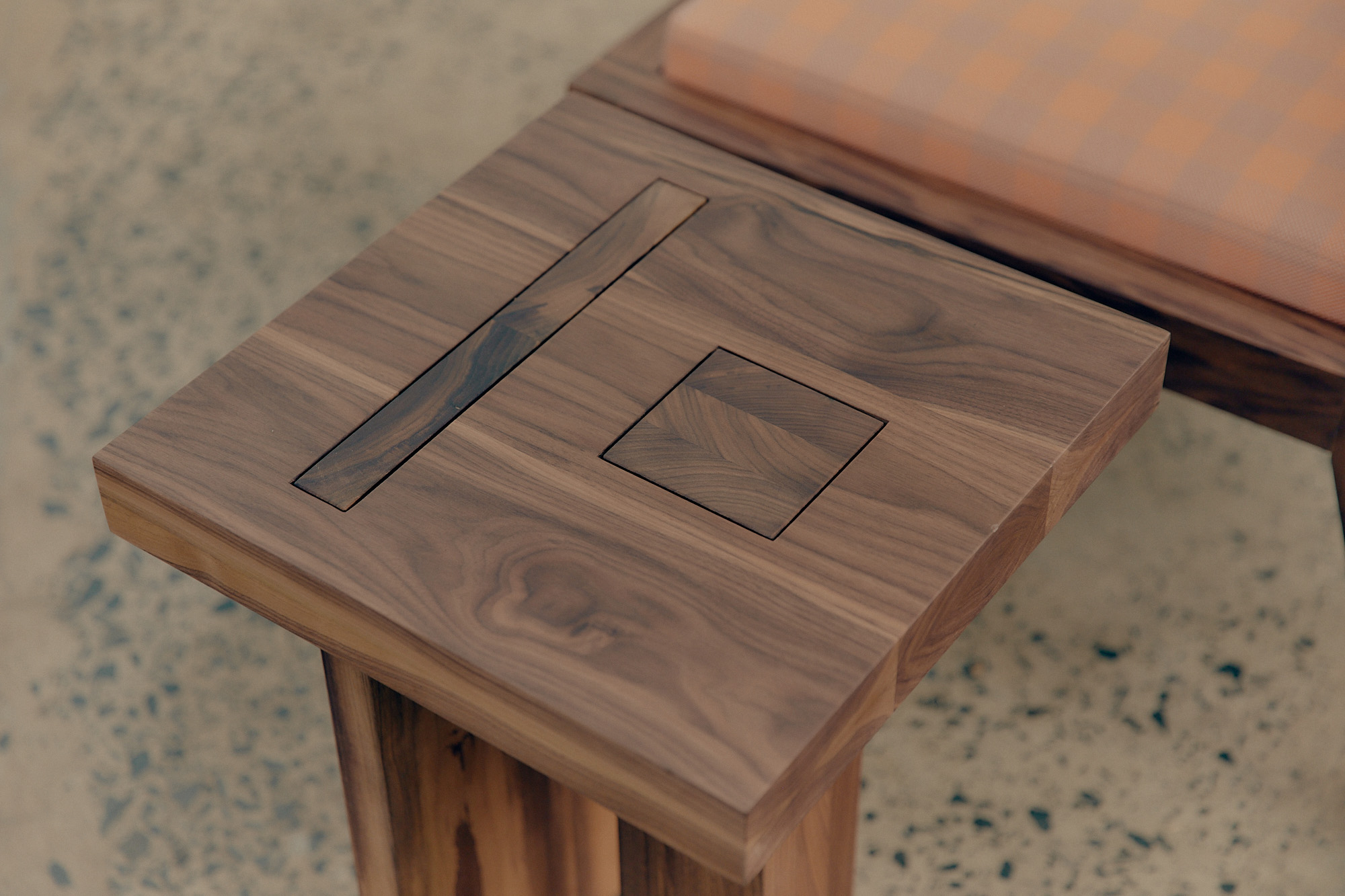 A beautifully handcrafted piece defined by its minimalist form. The Nora side table explores the interplay between post and blade leg supports, precisely positioned to intersect the top surface and reveal the natural beauty of the end grain. A subtle keyline detail separates the top from its base, subtly accentuating the refined craftsmanship and considered construction.
